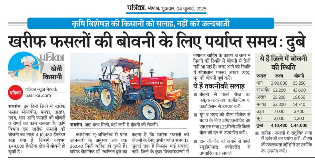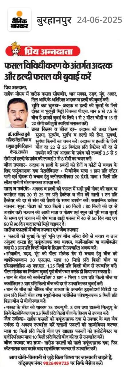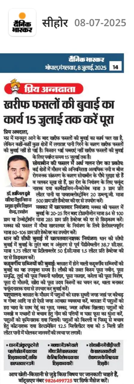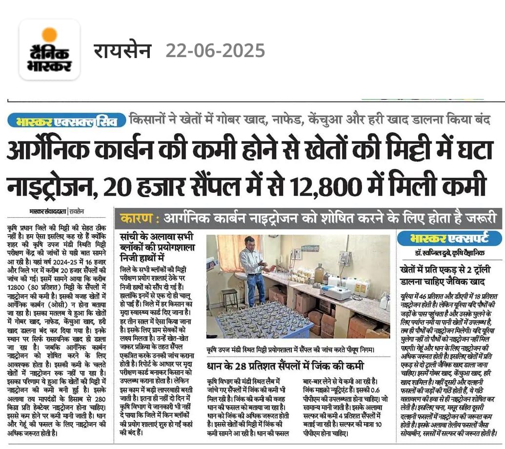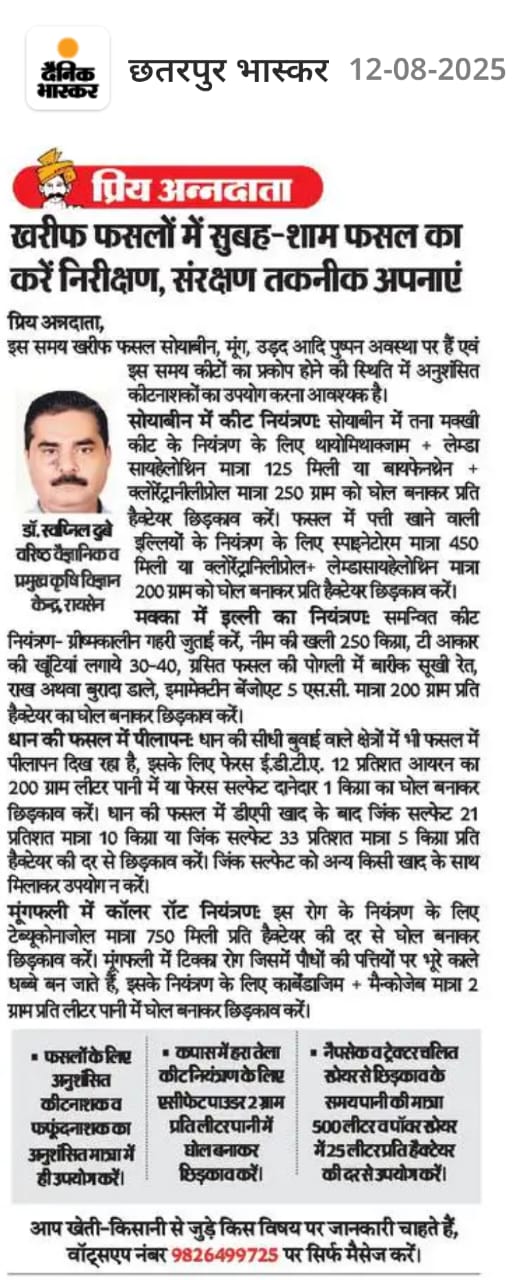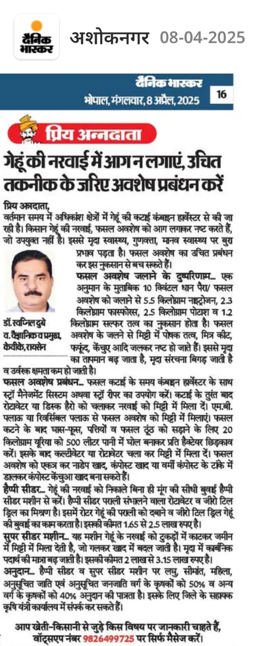 Dushyant Dhakad, ADA, Raisen, Dr. Swapnil Dubey. Sr. Scientist & Head,