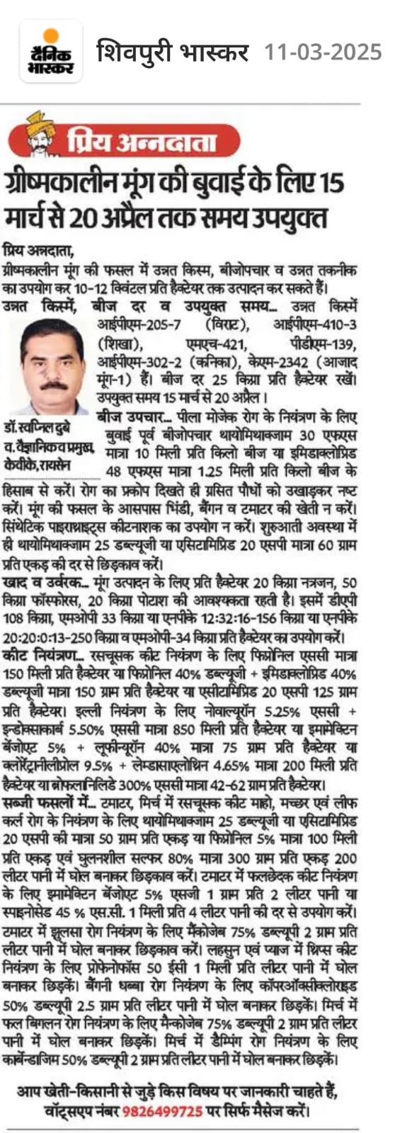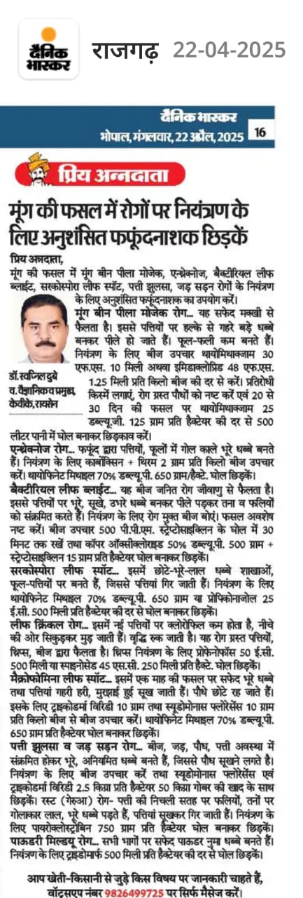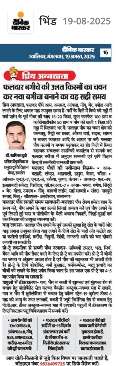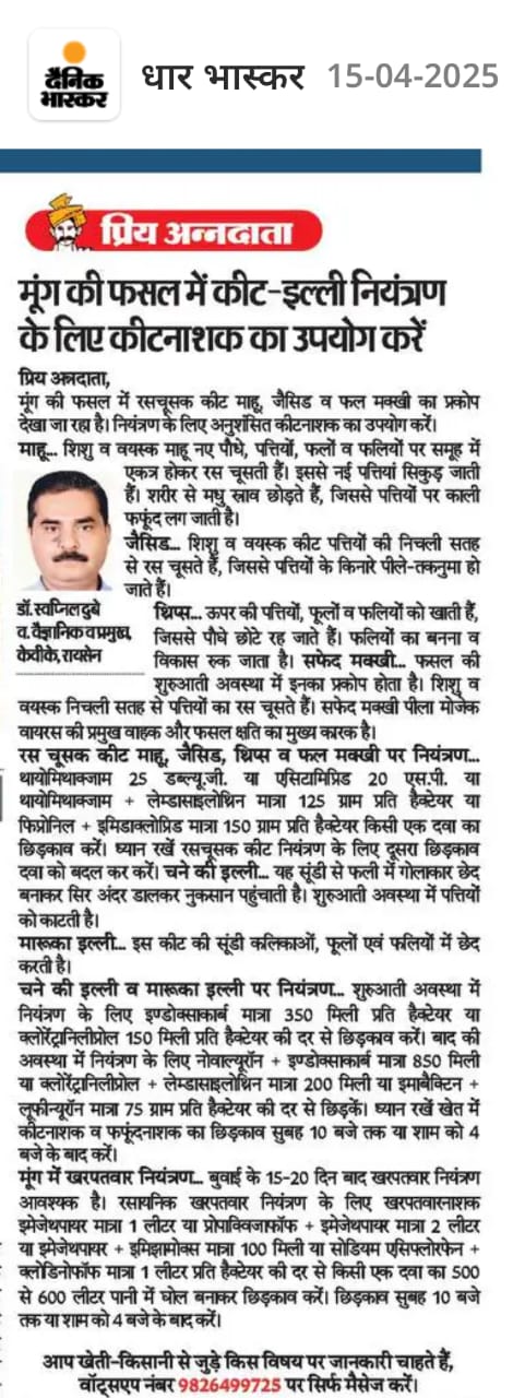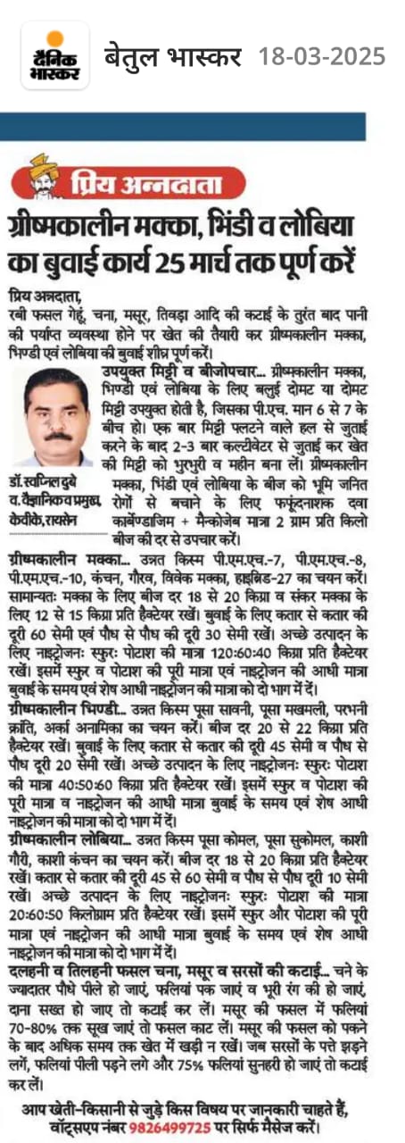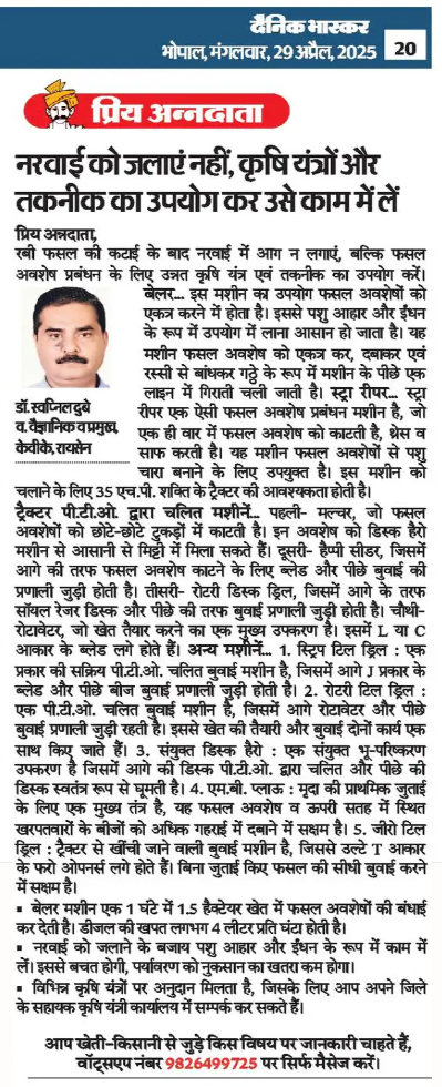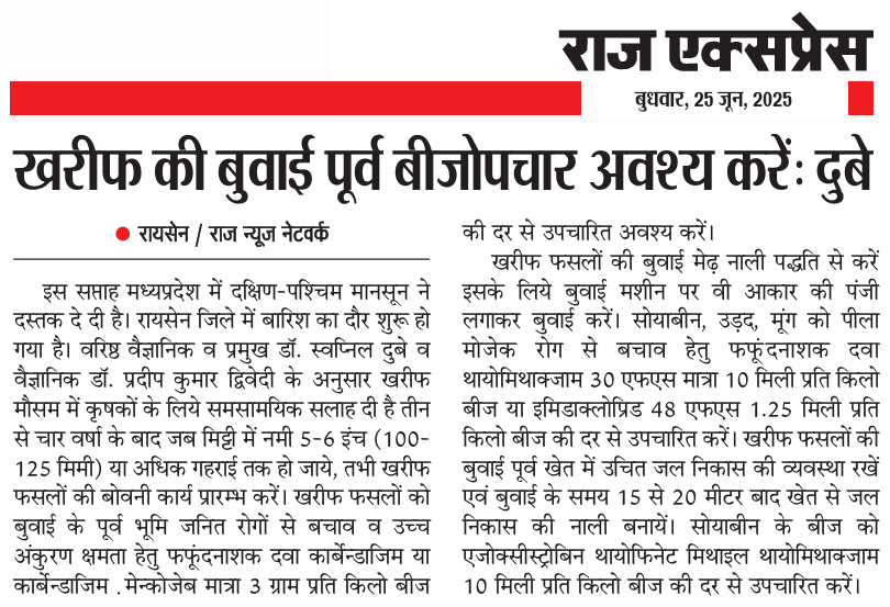 Dushyant Dhakad, ADA, Raisen, Dr. Swapnil Dubey. Sr. Scientist & Head,