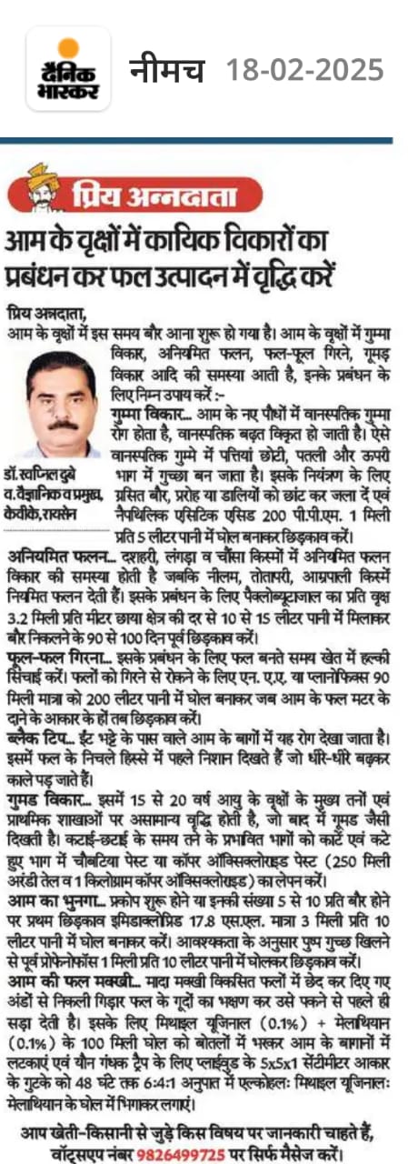 celebrated at KVK, Raisen on 05.12.2024. Shri. N.P. Suman, DDA, Raisen, Shri.