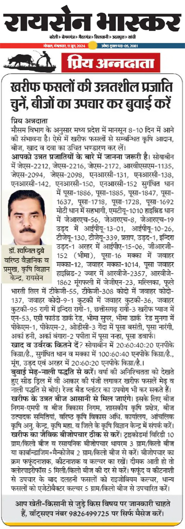 Dr. Swapnil Dubey. Sr. Scientist & Head, KVK, Raisen, All Scientist &