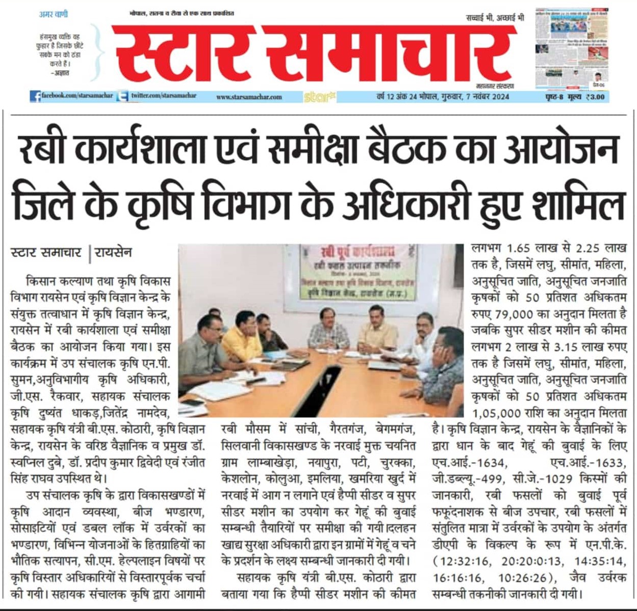 The Scientific Advisory committee (SAC Pre-Kharif) meeting 2024 of KVK, Raisen was conducted on 14/06/2024 under the Chairmanship of Dr. Sanjay Vaishampayan, Senior Scientist, KVK, Katni.