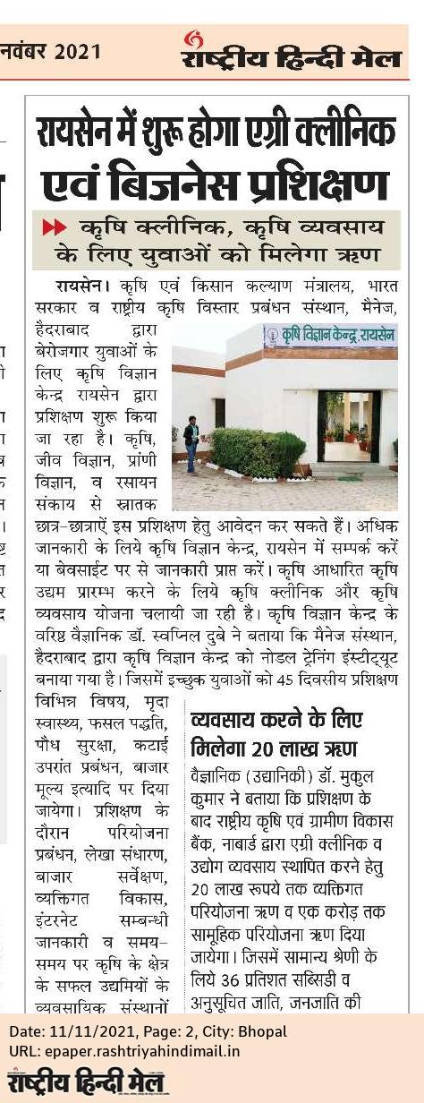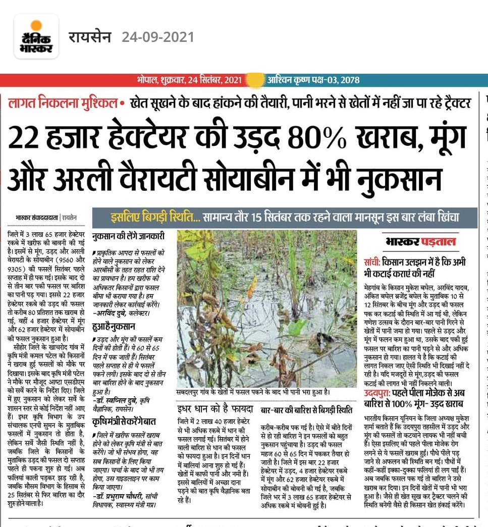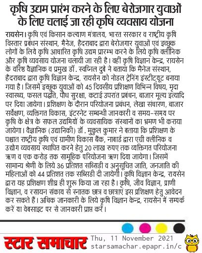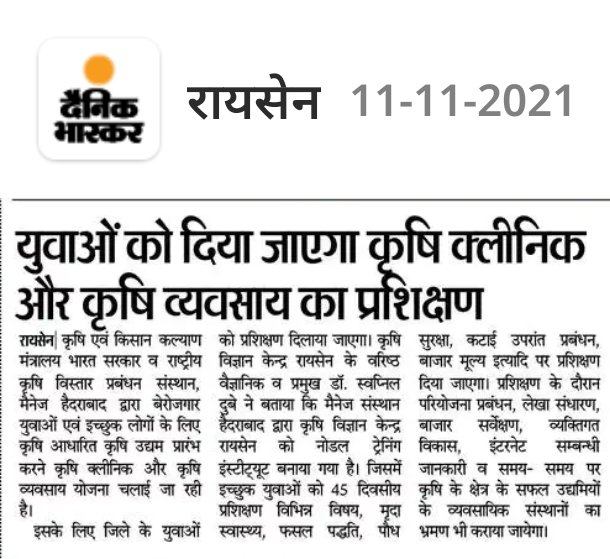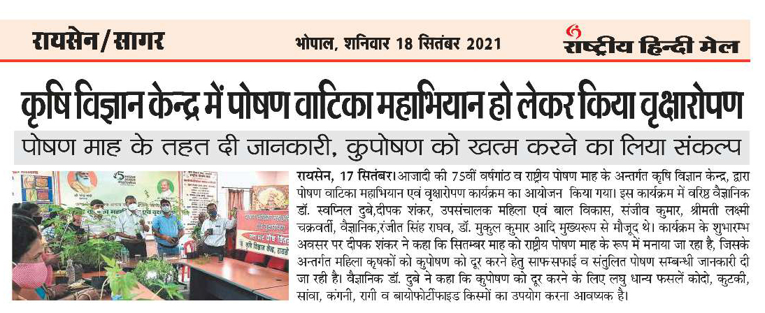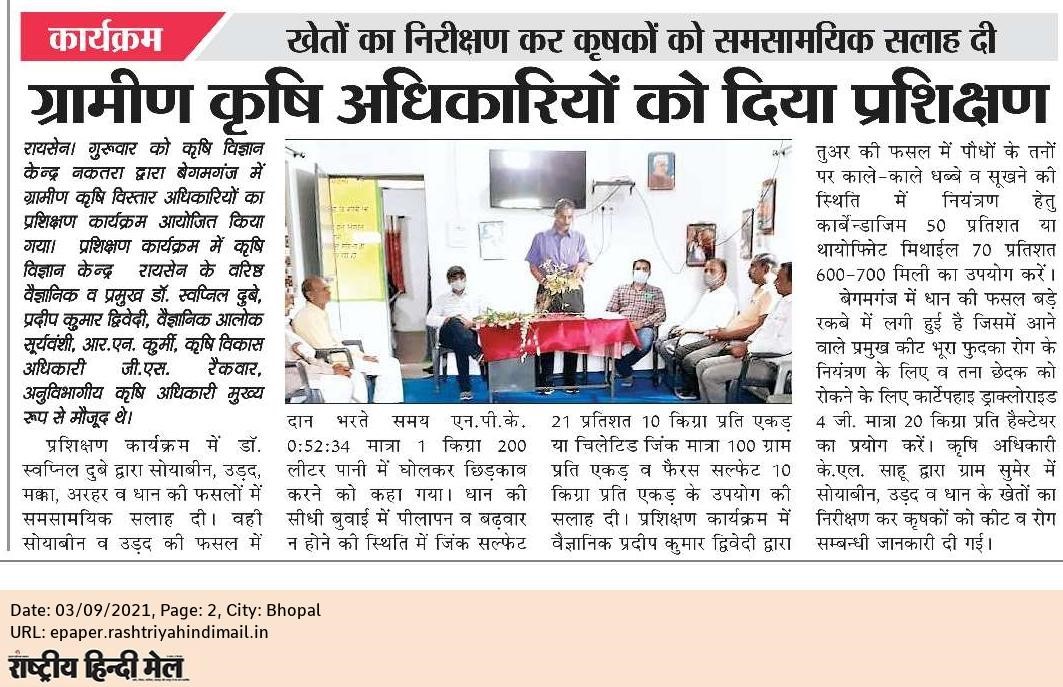 | अगर आपकी आयु 18 वर्ष से अधिक है, तो आप Covid-19 का टीका 1 मई 2021 से लगवा सकते हैं। टीका लगवाने के लिये https://selfregistration.cowin.gov.in/ या ArogyaSetu पर रजिस्टर करे। #Register yourself पर जाकर मोबाईल नंम्बर की सहायता से रजिस्ट्रेशन करें। # फोटो युक्त पहचान पत्र (जैसे-आधार कार्ड/वोटर कार्ड आदि) रजिस्ट्रीकरण प्रक्रिया में साथ में रखे। #Schedule Vaccination Appointment पर नजदीकी टीकाकरण केंन्द चुने। # Appointment स्लिप को सभालकर रखे। चयनित दिनांक को सामाजिक दूरी के साथ टीकाकरण करवायें।. वरिष्ठ वैज्ञानिक व प्रमुख, कृषि विज्ञान केंद्र, रायसेन (म.प्र.) |
